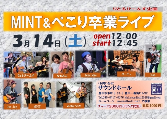 3月14日(土) りとるび~んず企画『MINT&ぺこり卒業ライブ』開催♬<出演>りとるび~んず なわみん Jeno Mao ボーチェ ...