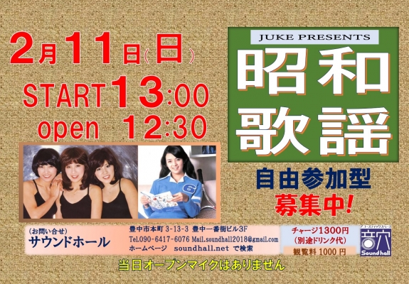 2月11(日)13時~ 昭和歌謡(JUKE PRESENT'S) 開催します♫