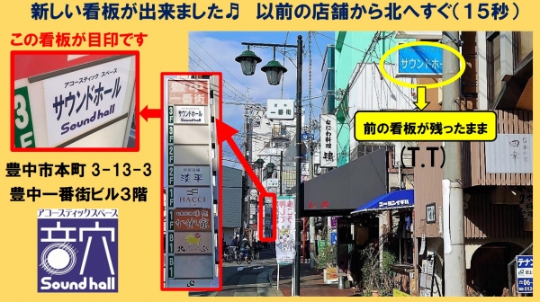 以前の店舗より北へすぐ(歩いて約15秒)のビルです(豊中市本町3-13-3 豊中一番街ビル3階)