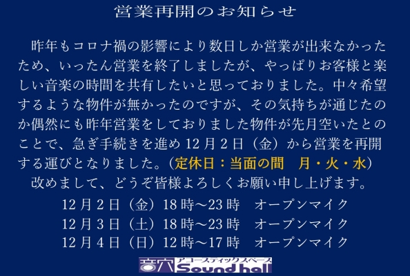 営業再開のお知らせ