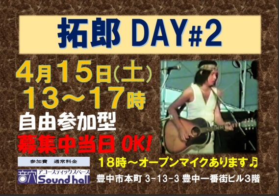 吉田拓郎しばり『拓郎DAY#2』4月15日(土)13~17時 開催します!拓郎ファンの方々のご意見が多くありましたので、急ですが開催させて頂きます♪ご都合よろしければ、是非ご参加お待ちしております♫...