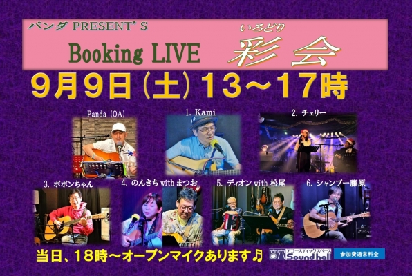 9月9日(土)13時~PANDA Presents 『彩会』Booking LIVEを開催します♬<出演順>(O.A) Panda (1) Kami (2) チェリー (3) ポポンちゃん ...