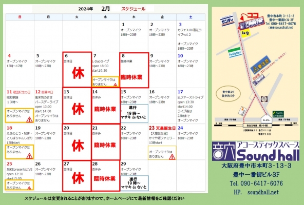 <2024年2月スケジュール>スケジュールは変更されることがあります。web等々で最新情報をご確認ください m(..)m...