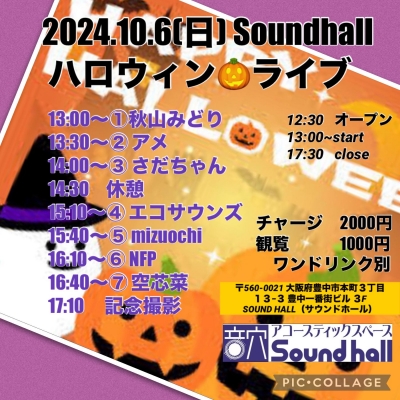 10月6日(日)『ハロウィン・ライブ』開催♬open 12:30 start 13:00観覧料 1000円 出演チャージ 2000円 (共にドリンク代別)<出演>①秋山みどり ②アメ ③さだちゃん ④...