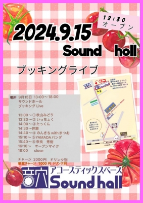 9月15日(日) 『September ブッキングライブ』開催♬<出演>いっちょく たっくん のんきちwithまつお 奈良秀樹 YAMADAパンダ 秋山みどり (順不同、敬称略)open 12:30...