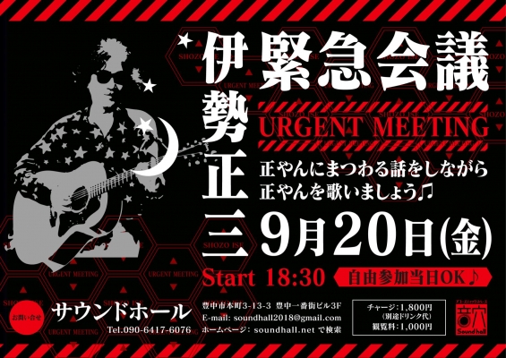 9月20日(金) 『伊勢正三 緊急会議』開催♬正やんにまつわるエピソードなどなど、とってもレアな話や出来事などを検証しながら、正やんがらみの楽曲をご披露ください!もちろん、自由参加なんで楽曲披露だけで...