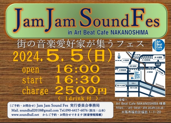 5月5日(日)こどもの日『Jam Jam Sound Fes』in art beat cafe NAKANOSHIMA都会の中心(福島区)、朝日放送本社前で第1回フェスを開催します!<場所>Art B...