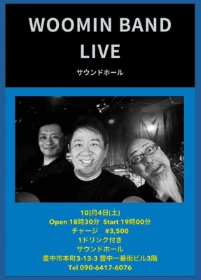 10月4日(土)『WOOMIN BAND LIVE』開催♬韓国でメジャーデビューされたWOOMINさんととっても楽しいいわちゃん、そして超絶キーボーダー鷹野さんの3人の昭和チックで独特なライブです!!...