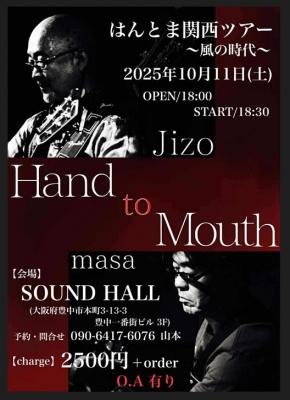 10月11日(土) はんとま関西ツアー『Hand-To-Mouth』~風の時代~ Open 18:00 Start 18:30 Charge 2500(+order) 山口県で活躍されておられるプ...