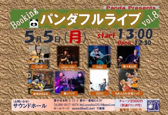 5月5日(月・こどもの日)13時~PANDA Presents『パンダフルライブvol.8』Booking LIVEを開催します♬<出演> (1) パンダ (2) calasu_taka (3) Sa...