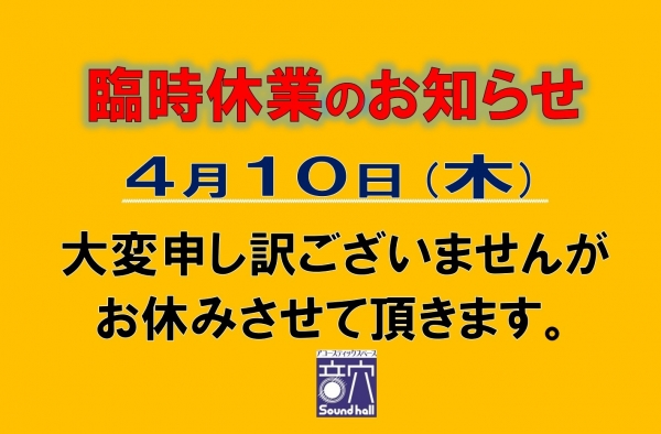 4月10日(木)臨時休業させて頂きます m(..)m...