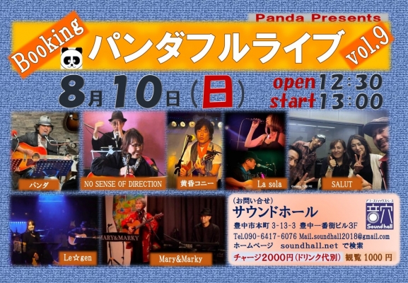 8月10日(日)13時~PANDA Presents『パンダフルライブvol.9』Booking LIVEを開催します♬<出演> (1) パンダ (2) 黄昏コニー (3) SALUT (4) MA...