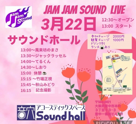 3月22日(土)『ブッキングライブ』開催♬ 風来坊のまさ ジャックラッセル てるくん しおり 竹端正視 秋山みどり (順不同、敬称略)OPEN 12:30 START 13:00参加チャー...