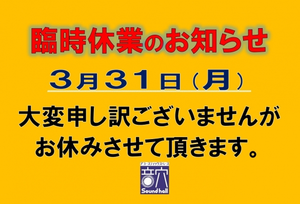 3月31日(月)臨時休業させて頂きますm(..)m...